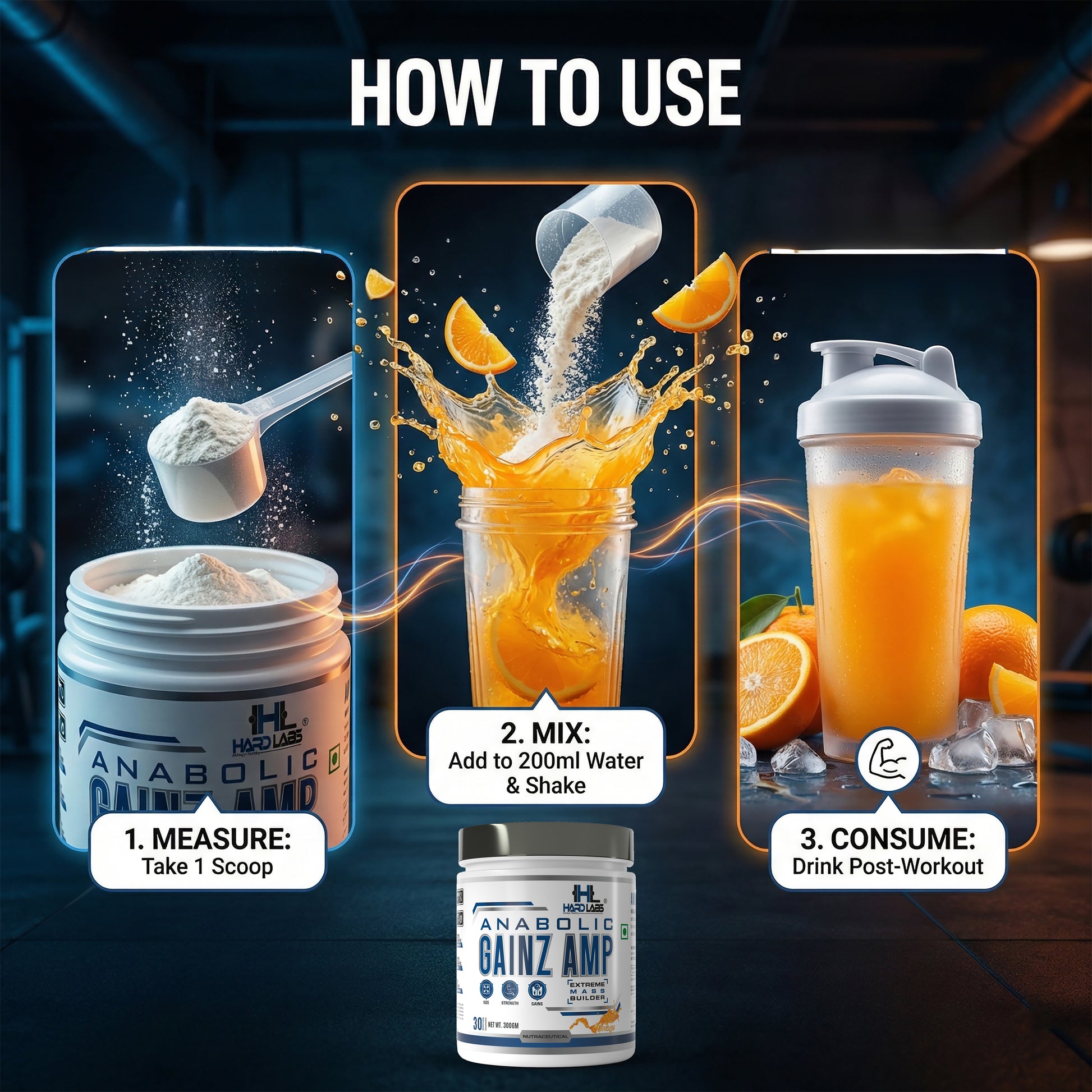 Achieve your fitness goals naturally with Anabolic Gainz Amp, a 100% dope-free and natural muscle-gaining formula designed for athletes and fitness enthusiasts who demand the best. Packed with powerful ingredients, it’s your ultimate partner for muscle growth, strength, and recovery. 5000mg Pump Matrix: Boosts blood flow for enhanced muscle pumps and vascularity during workouts. 3000mg Creatine Complex: Fuels your muscles with energy, improving strength and endurance. 250mg L-Glutamine: Supports muscle recovery and reduces post-workout fatigue. 650mg Tribulus: Naturally enhances testosterone levels to promote muscle growth. 535mg Ashwagandha: Reduces stress and boosts overall performance. 485mg Safed Musli: Improves stamina and supports natural muscle gain. With Hard Labs Gainz Amp, you can gain muscle without relying on steroids. This scientifically crafted formula ensures natural and sustainable results, helping you stay at the top of your game.