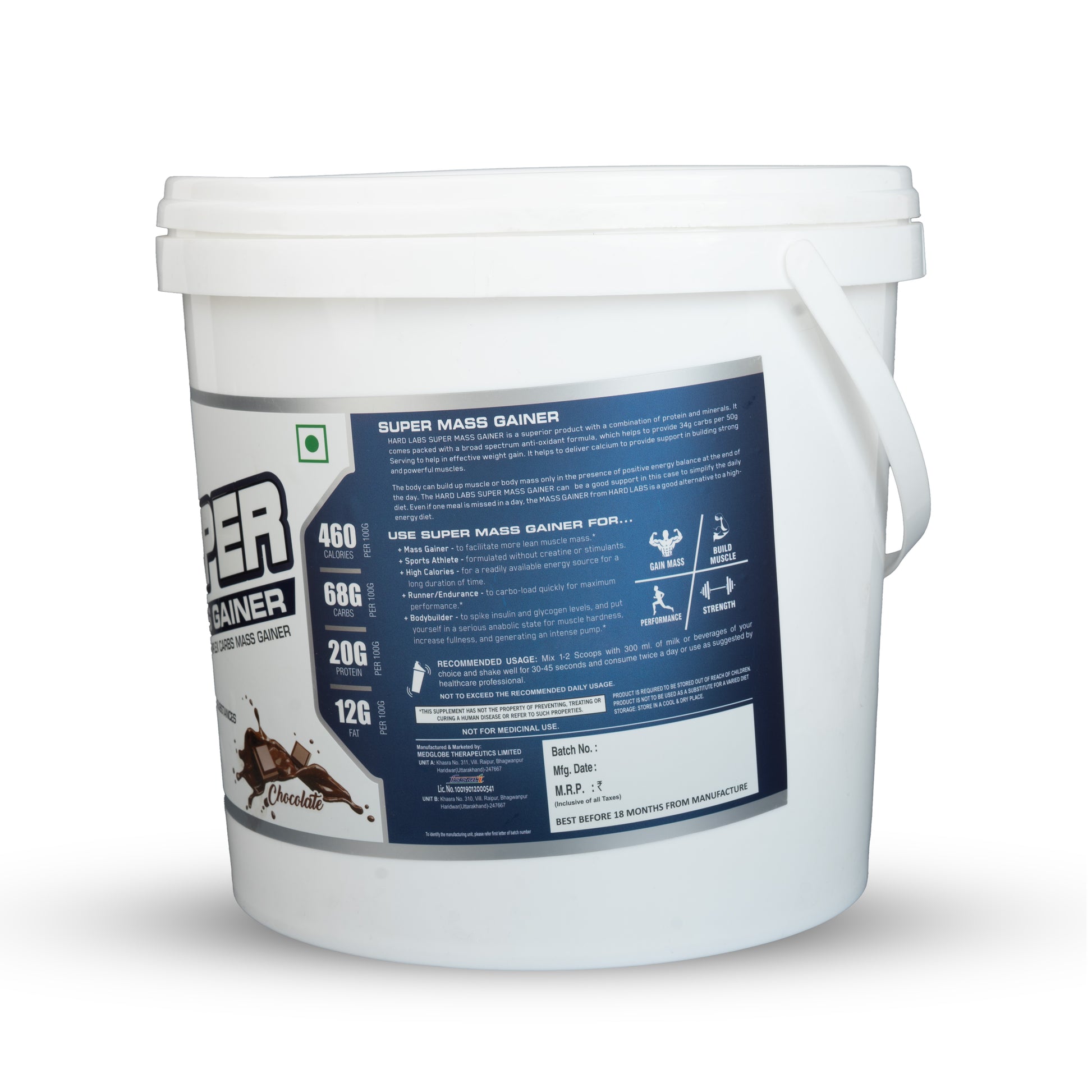 Super Mass Gainer is a high-calorie supplement designed to help you bulk up and support muscle growth. It provides the necessary calories, protein, and carbohydrates to fuel intense workouts and enhance muscle recovery, making it ideal for individuals looking to gain mass and size.